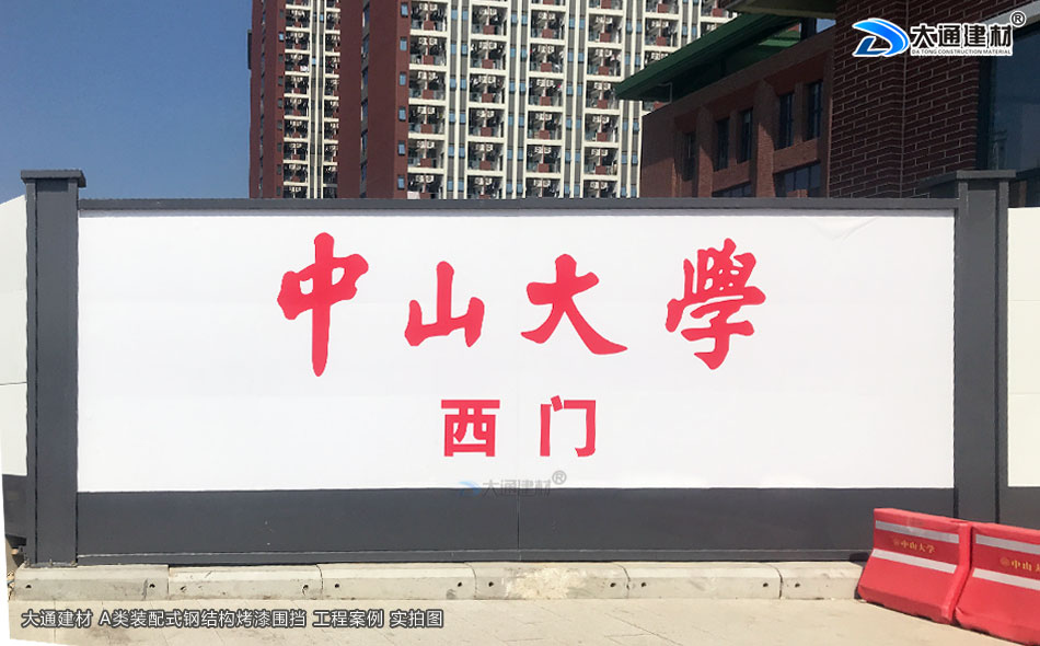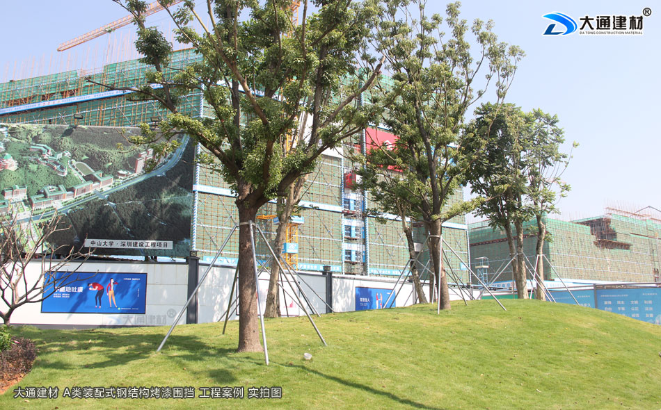 大通A類鋼圍擋烤漆半龍骨款應用于中山大學-深圳建設工程-A/B/C類圍擋-深圳市大通建材有限公司鋼圍擋生產定制廠家