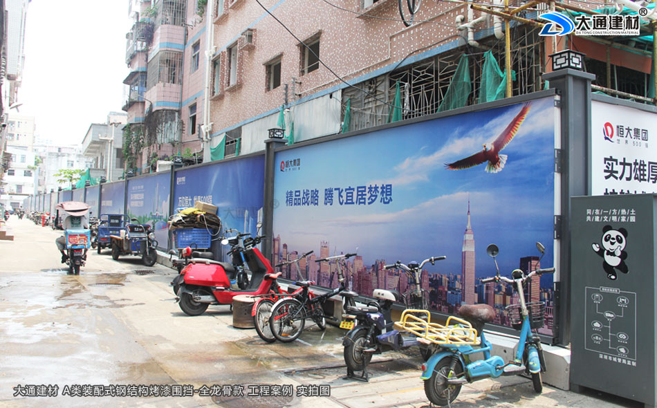 大通A類烤漆鋼圍擋-全龍骨款應用于深圳南山大新村城市更新項目-A/B/C類圍擋-深圳市大通建材有限公司鋼圍擋生產定制廠家