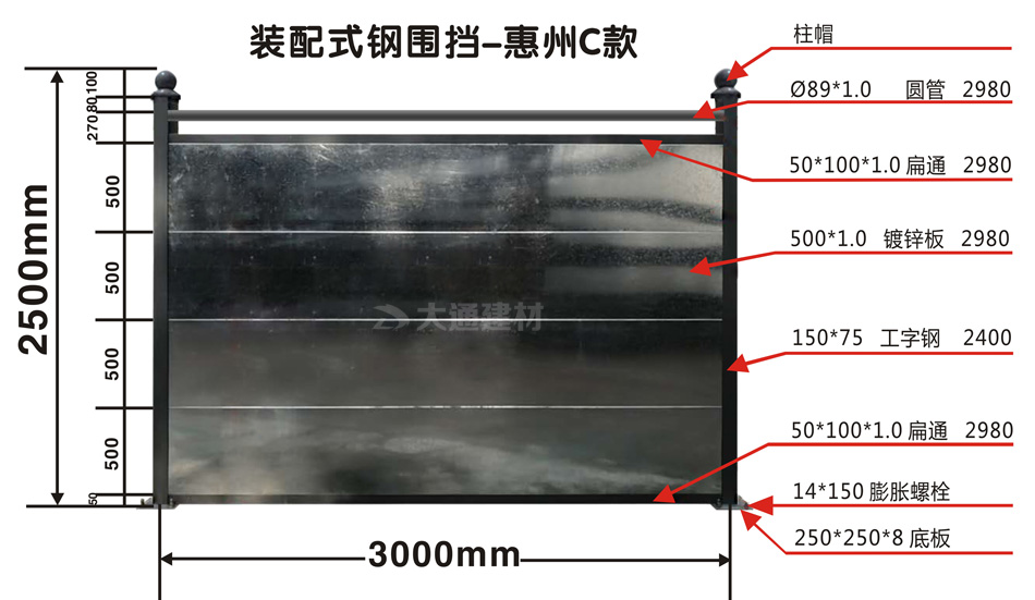 深圳大通建材-裝配式鋼結構圍擋惠州C款-惠州工程施工圍擋案例