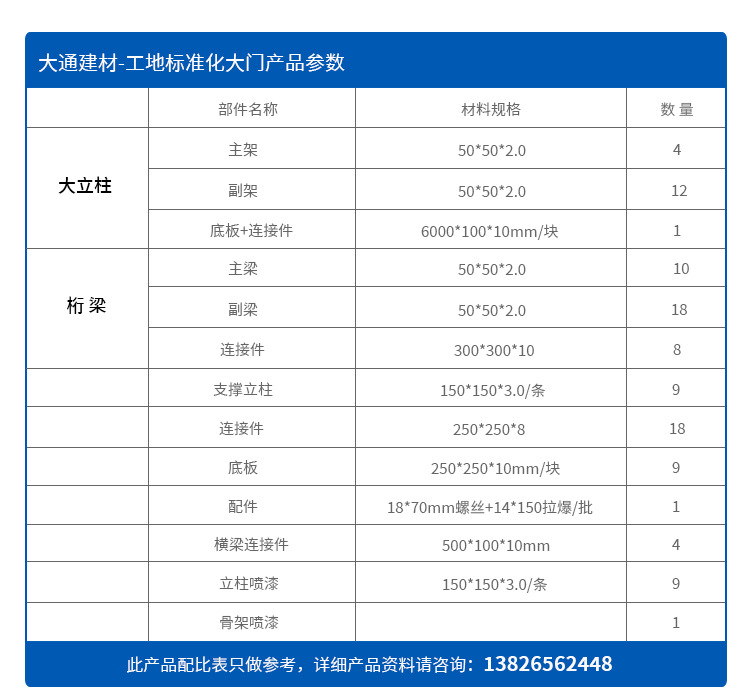深圳市大通建材有限公司生產批發的施工現場標準工地大門,符合市政標準、美觀環保、安全穩固,大通建材建筑工地大門常規尺寸有現貨,亦可按實際需求定制生產。了解更多關于 標準工地大門 規格、價格等詳情請致電 梁先生13826562448 感謝您的信賴與支持 期待與您的合作!