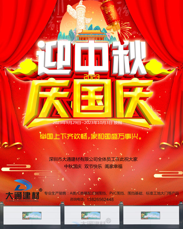 大通圍擋為您解答關于“深圳市大通建材有限公司祝大家“中秋國慶節”快樂”相關問題?