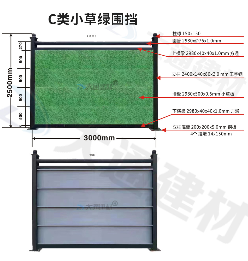 大通建材C類小草綠圍擋,拆裝便利、快速拼裝、結(jié)構(gòu)牢固、安全性高,已廣泛應(yīng)用于深圳、東莞、惠州、廣州、汕頭等地區(qū)的工程施工項目中