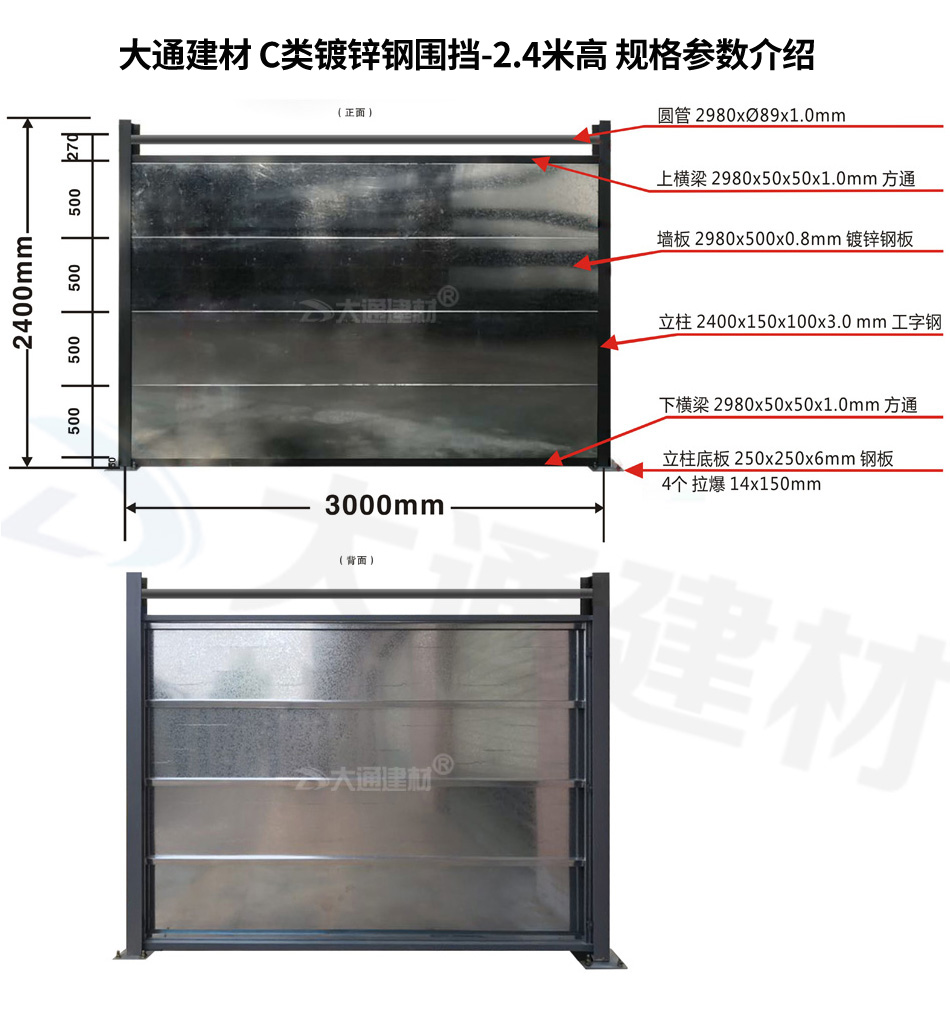 2米4高C類裝配式鋼圍擋-鍍鋅板款