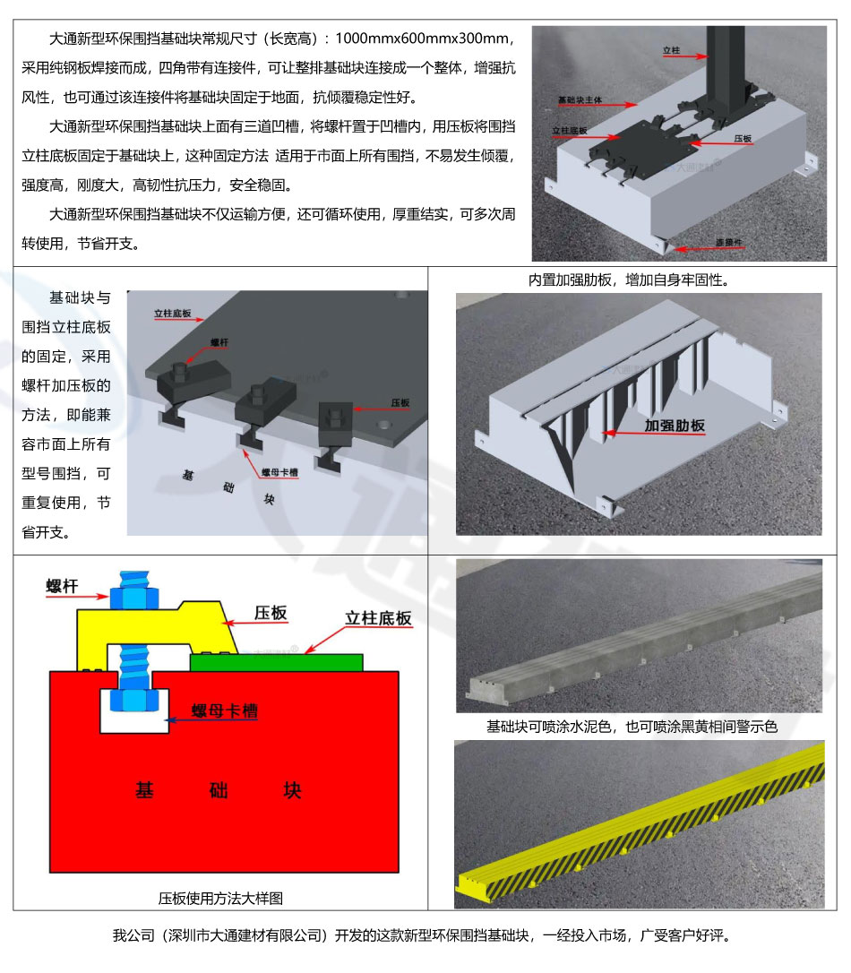 深圳市大通建材有限公司是一家專業的新型環保圍擋基礎、圍擋基礎水泥預制塊、圍擋水泥墩、圍擋基座生產批發廠家,了解更多“大通建材圍擋基礎”規格與價格詳情 請致電 梁先生13826562448